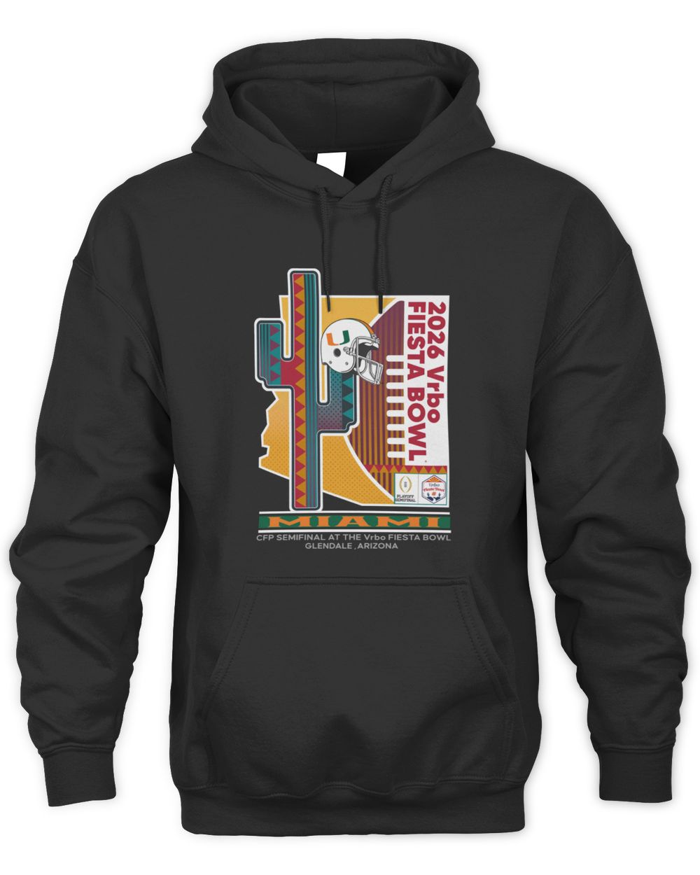 2026 Vrbo Fiesta Bowl Shop Miami Hurricanes CFP Semifinal Prick 6 Black Official Hoodie