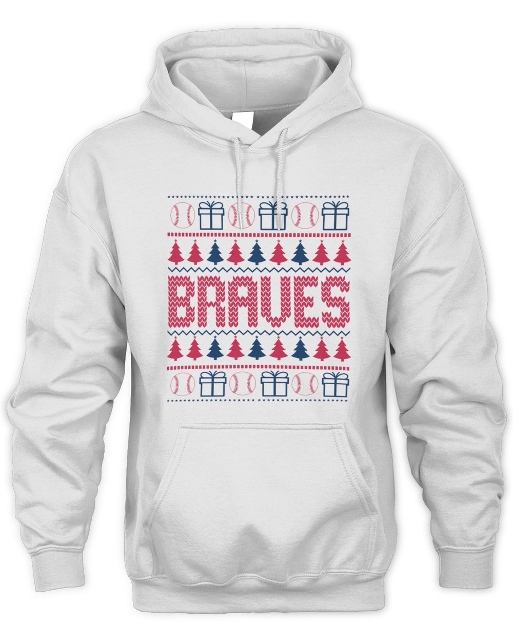 Atlanta Braves Christmas Baseball Trees Presents Ugly Sweater Hoodie