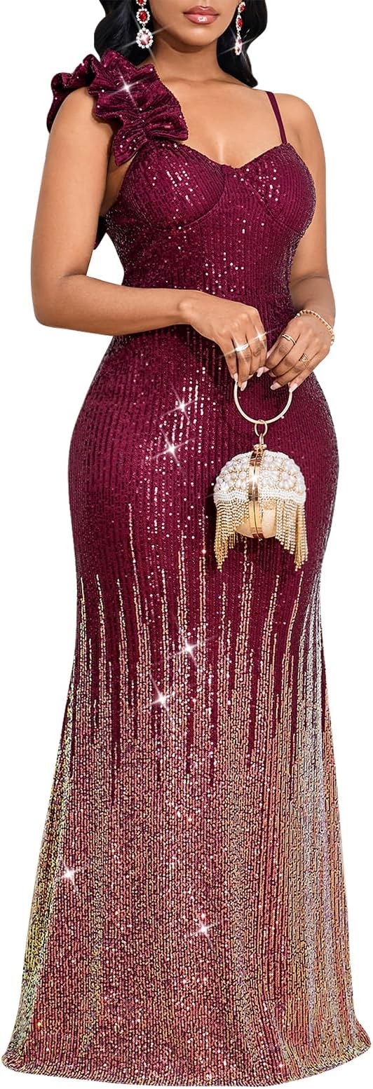 - 【Material】: 95% Polyester and 5% Spandex, shining glittering sequin, sexy party night dress is made of high quality material, soft and comfortable for skin.