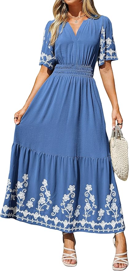 - Material: This SIMPLEE women’s maxi dress is crafted from 100% polyester. The fabric is lightweight, breathable, and smooth to the touch, delivering a comfortable, pressure-free wearing experience for women and ladies, and adapts to the changing weather of spring, summer, and fall.