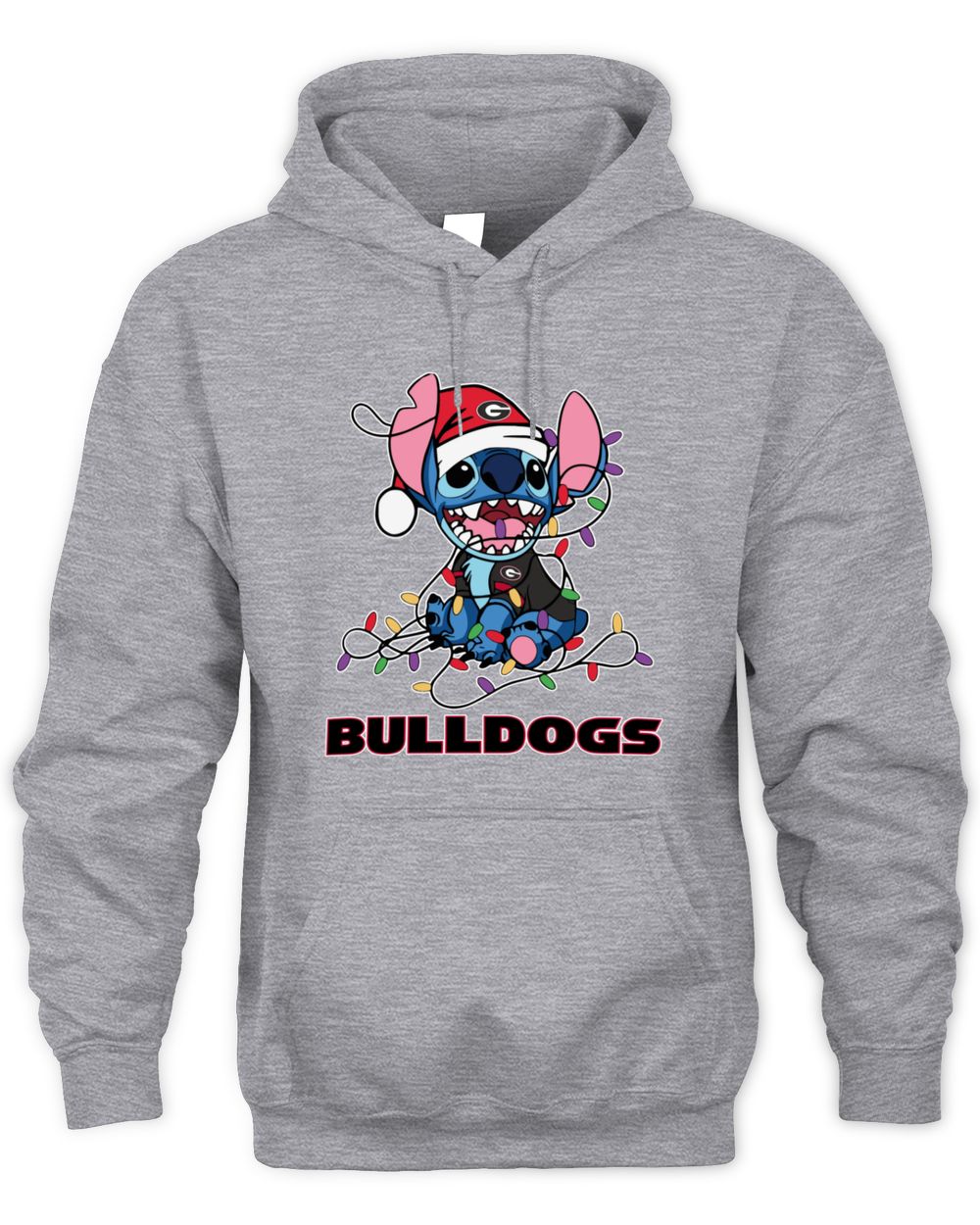 Georgia Bulldogs Stitch Santa Christmas Lights Hoodie