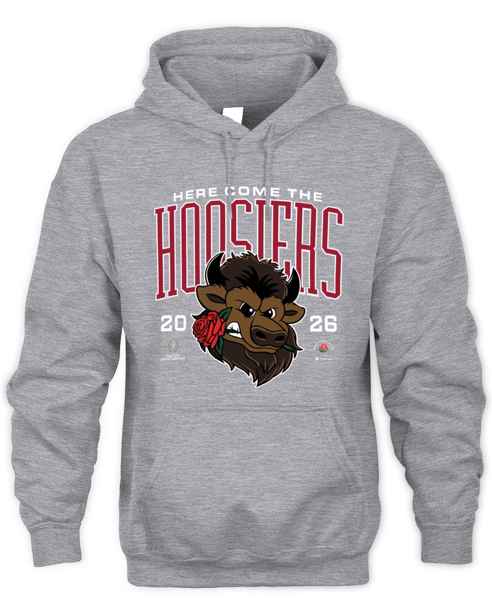 Indiana Hoosiers Grey Homefield 2026 Rose Bowl Bison Rose In Mouth Sweatshirt Hoodie