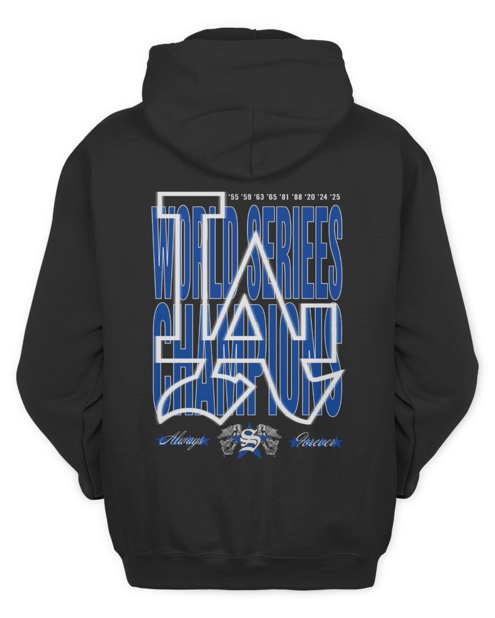 LA Dodgers World Series Champions Years Blue White Graphic Hoodie