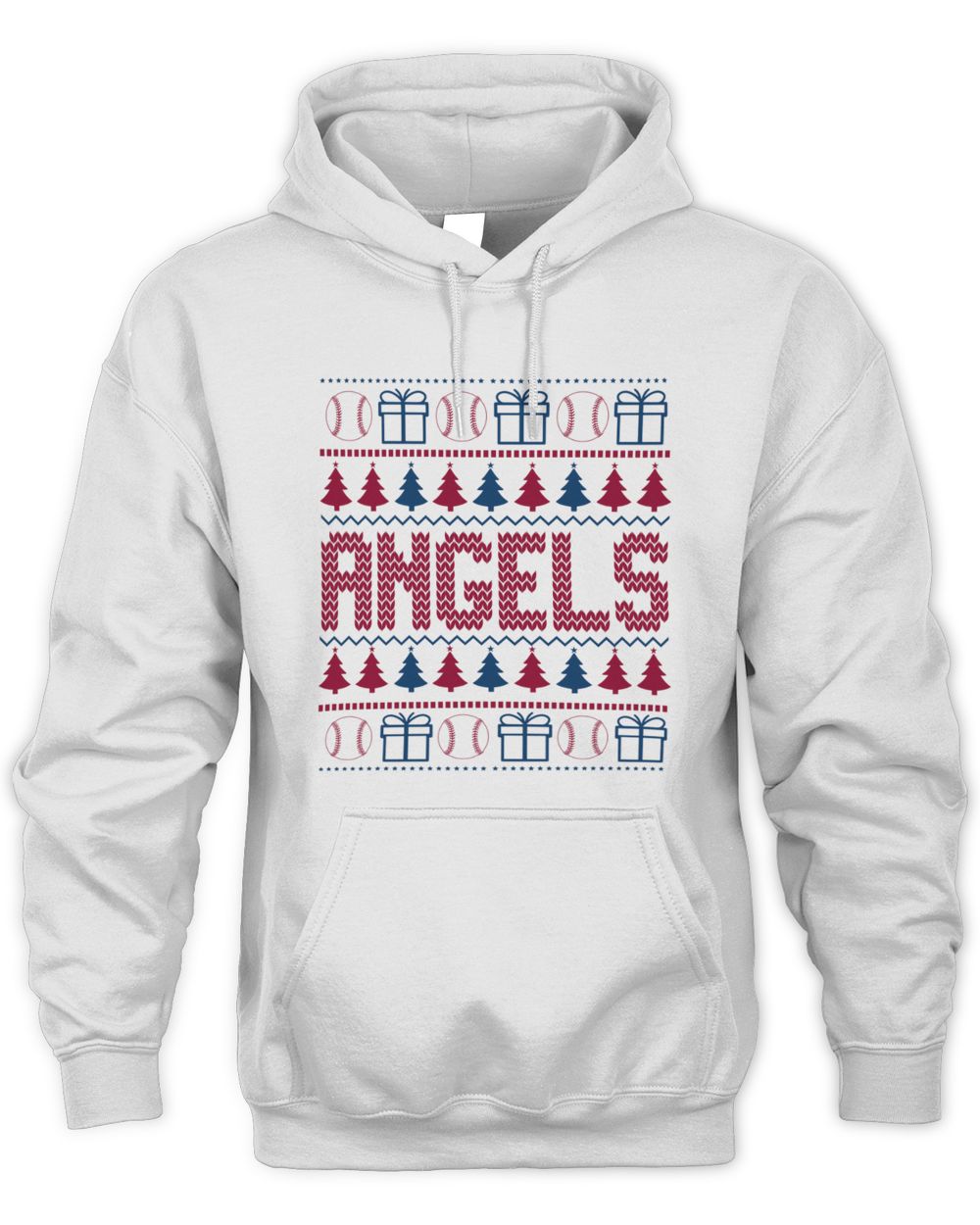 Los Angeles Angels Christmas Baseball Trees Presents Ugly Sweater Hoodie