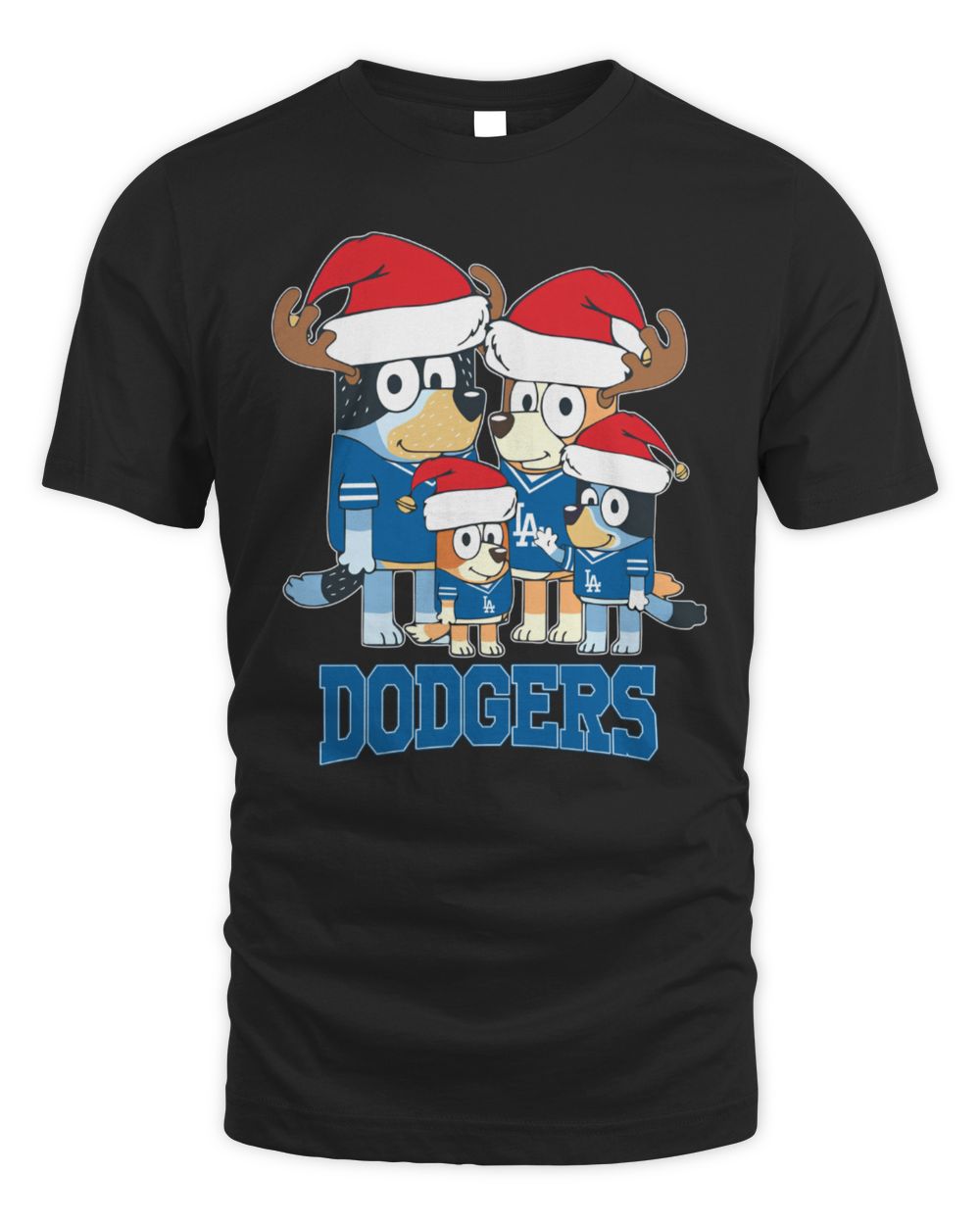 Los Angeles Dodgers Bluey Santa Family Christmas Baseball T-Shirt