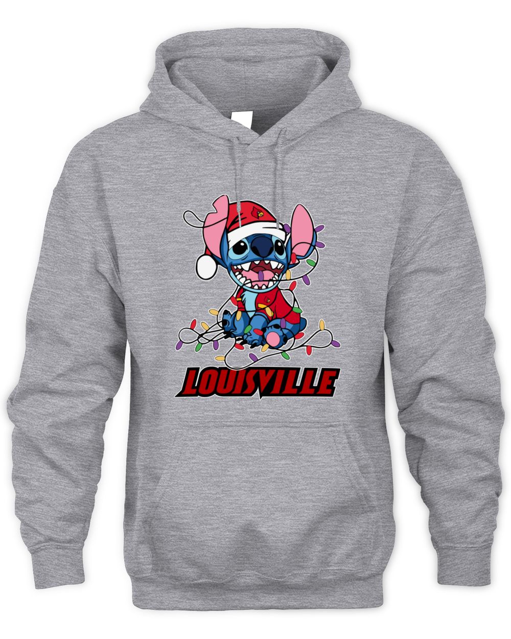 Louisville Cardinals Stitch Santa Christmas Lights Hoodie