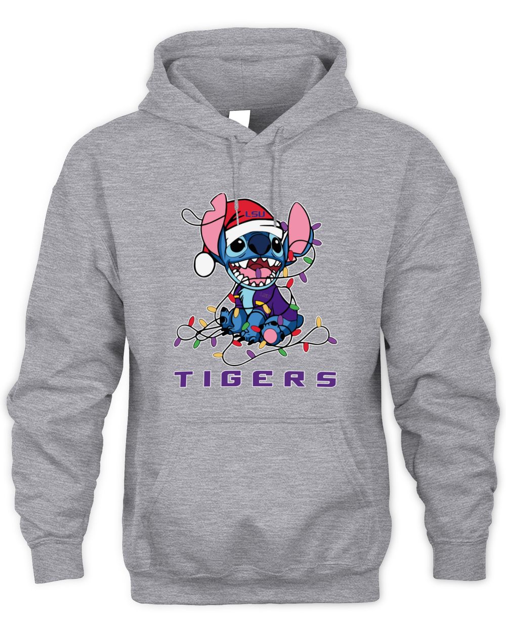 LSU Tigers Stitch Santa Christmas Lights Hoodie