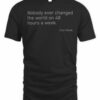 Preshrunk t-shirt in 100% cotton. Seamless twin needle 7/8″ collar. Taped neck and shoulders. Rolled forward shoulders for better fit. Twin needle sleeve and bottom hems. Quarter-turned to eliminate centre crease.