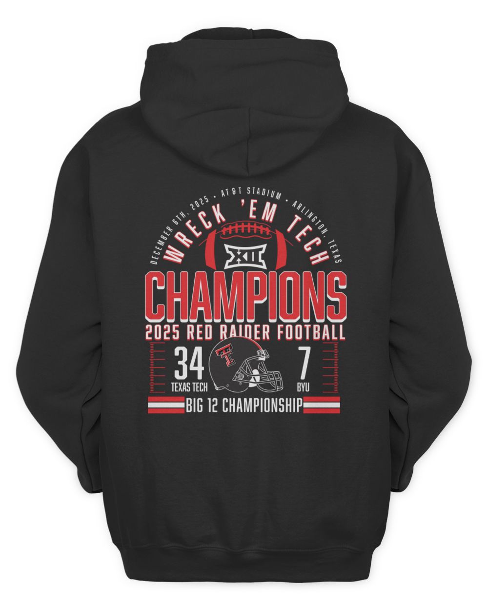 Men’s Black Texas Tech Red Raiders 2025 Big 12 Football Champions Score Sweatshirt Hoodie