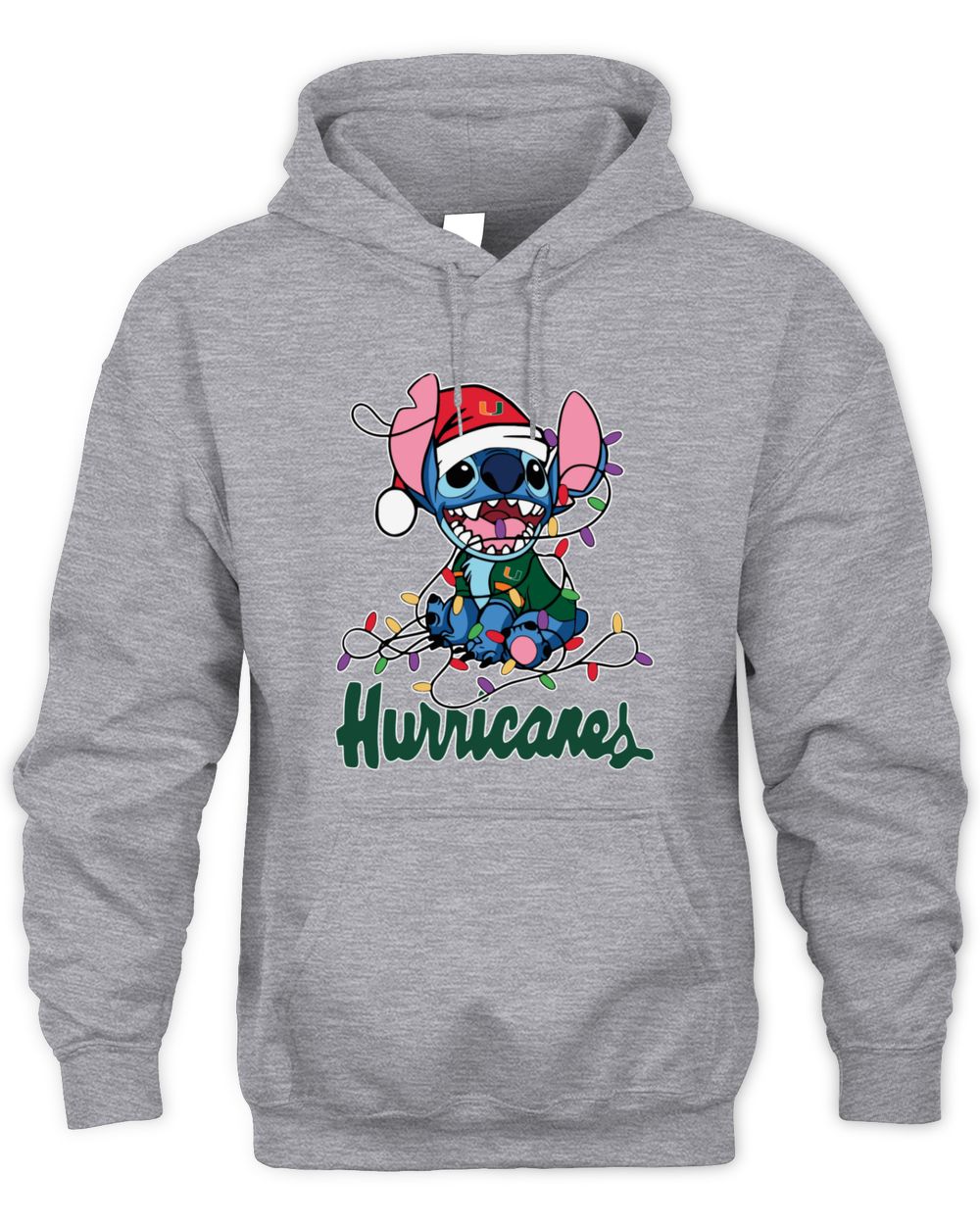 Miami Hurricanes Stitch Santa Christmas Lights Hoodie