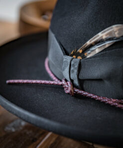The Modern Felt Hat features a medium-height center dent crown paired with a 7 cm (2.75 in) overwelt pencil roll brim, creating a sleek and contemporary silhouette. A 38 mm modern grosgrain hatband, accented with a double back bow and leather cord, adds a touch of refined detail and texture. Designed for versatility and modern appeal, this hat blends classic craftsmanship with stylish innovation.