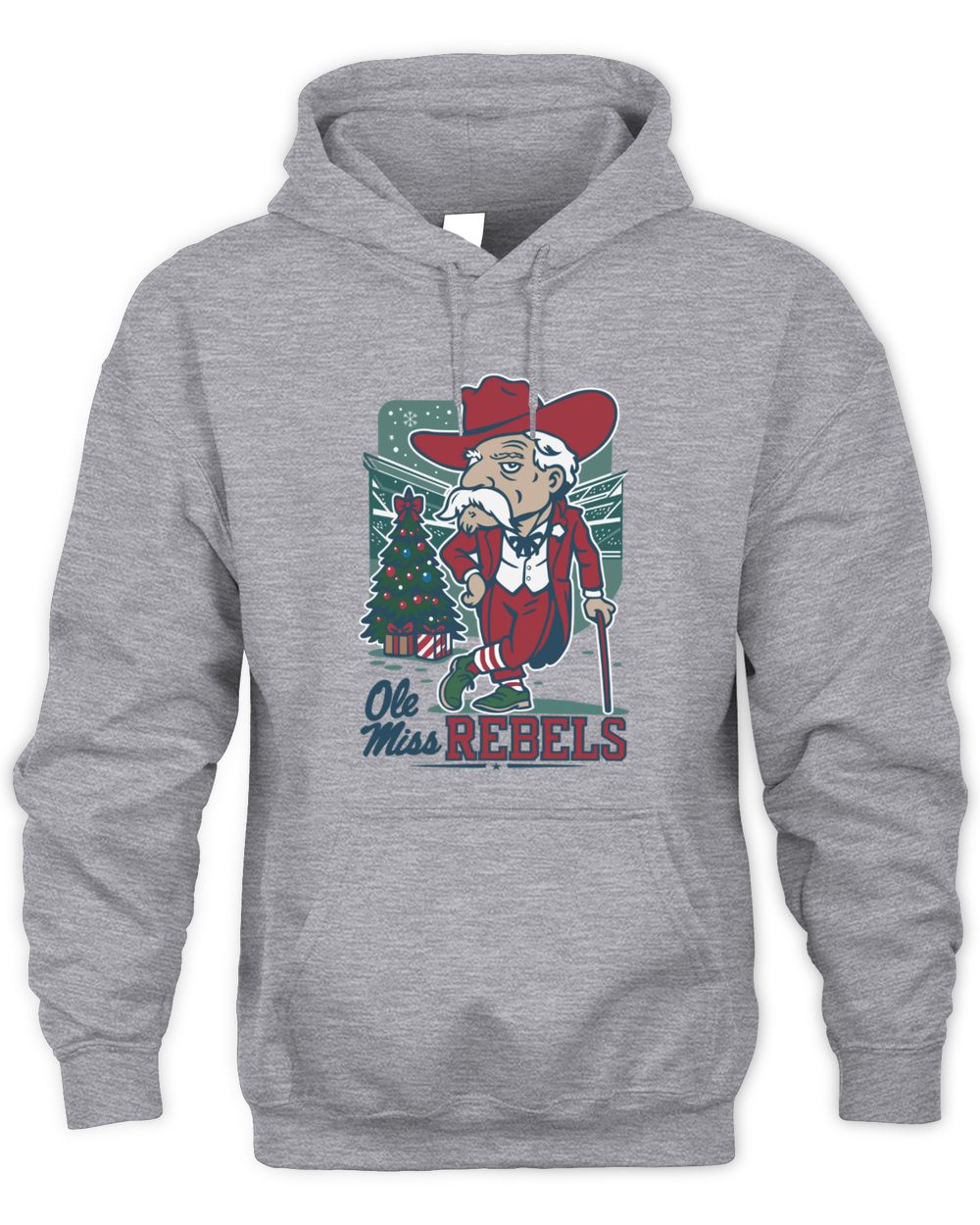 Ole Miss Christmas Mascot Gentleman Santa Walking Cane Tree Hoodie