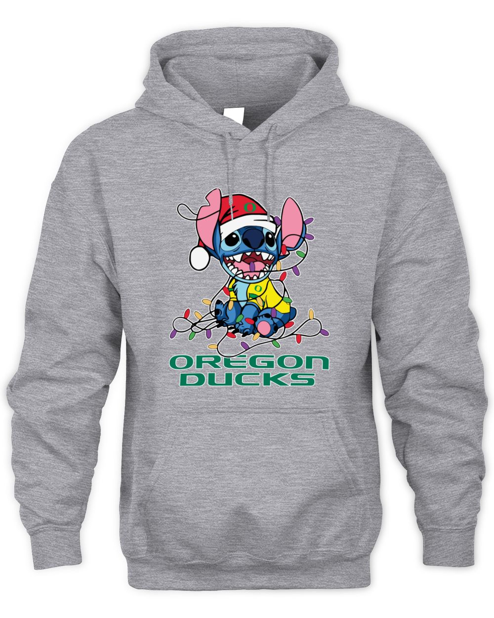 Oregon Ducks Stitch Santa Christmas Lights Hoodie