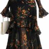 - FEATURES:This cocktail party gown features high neck, round neck, double-layer mesh splicing, mermaid hem, ruffle hem and long sleeve. The maxi dress creates a flattering silhouette, making it a stylish mesh dress, floral dress for women, slimming dresses for curvy women