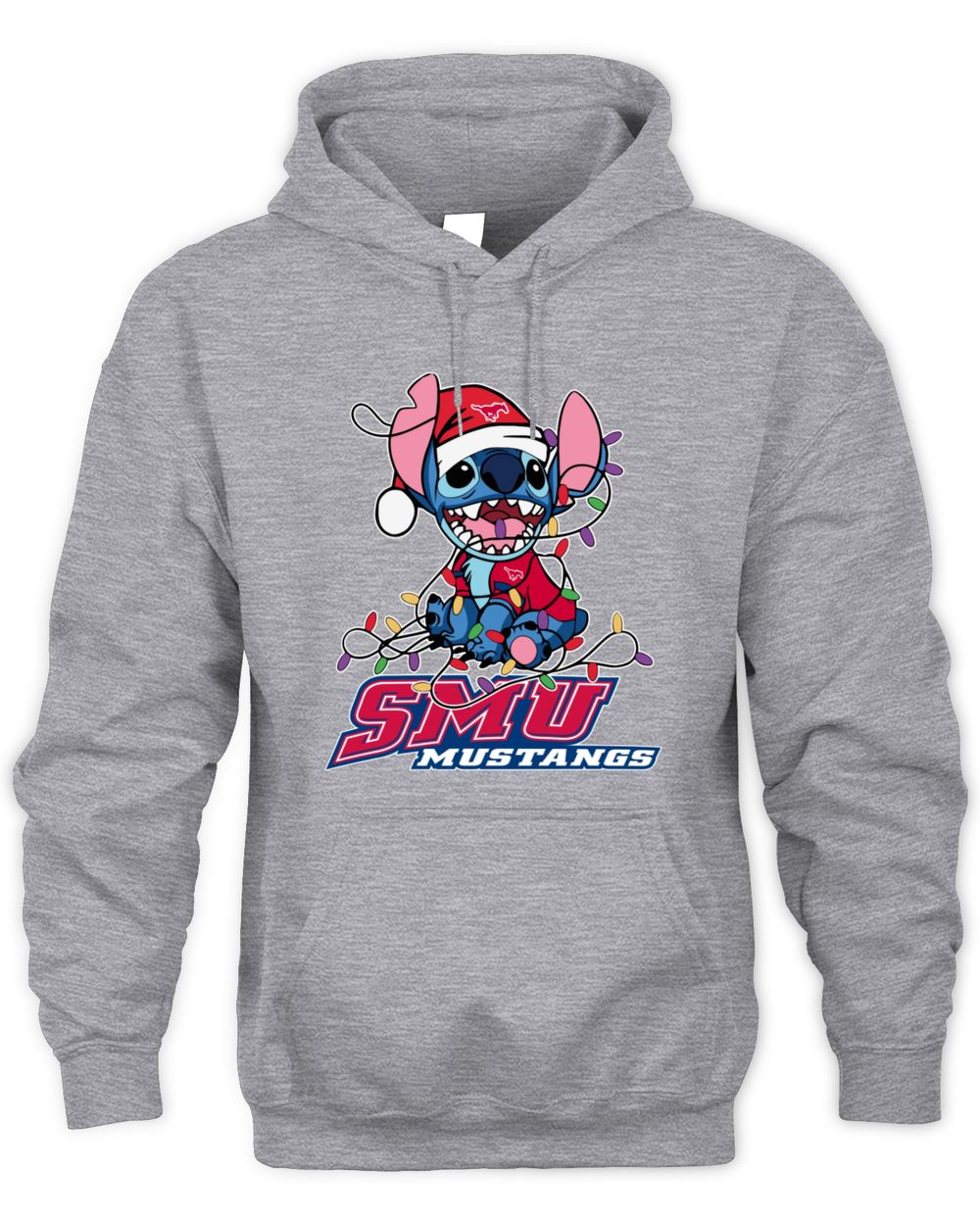 SMU Mustangs Stitch Santa Christmas Lights Hoodie