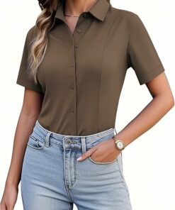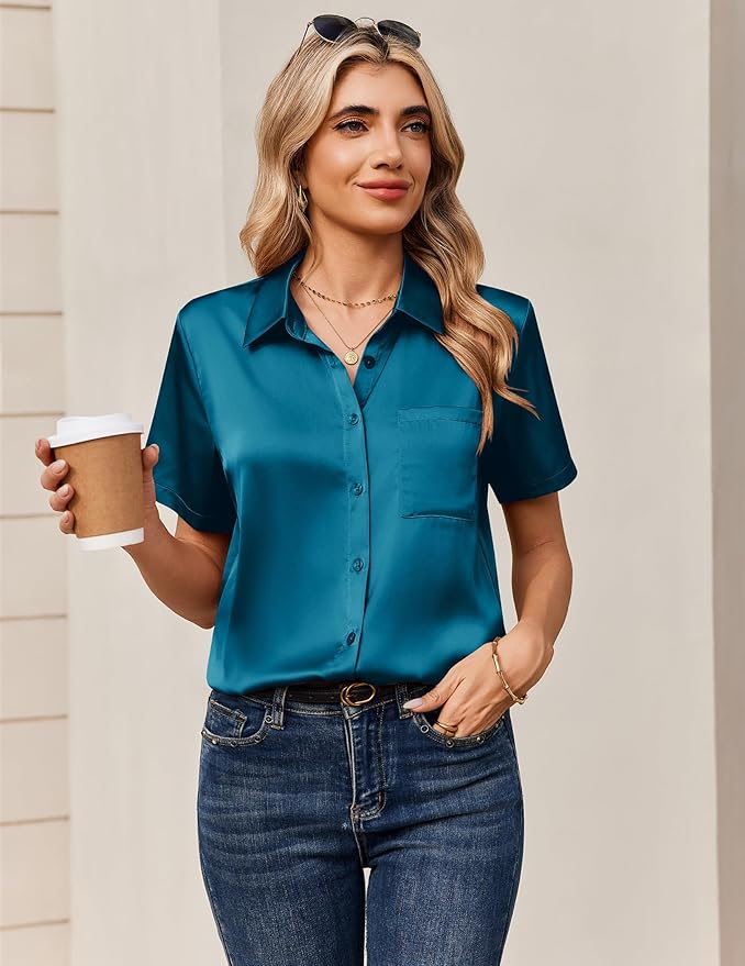 - Fabric: Silky soft, comfy and soft satin material, lightweight and breathable. Satin silk button down shirts made of 95% Polyester and 5% Spandex for a comfortable touch and coolness. Ladies tops and blouses drape beautifully for an effortlessly elegant look.