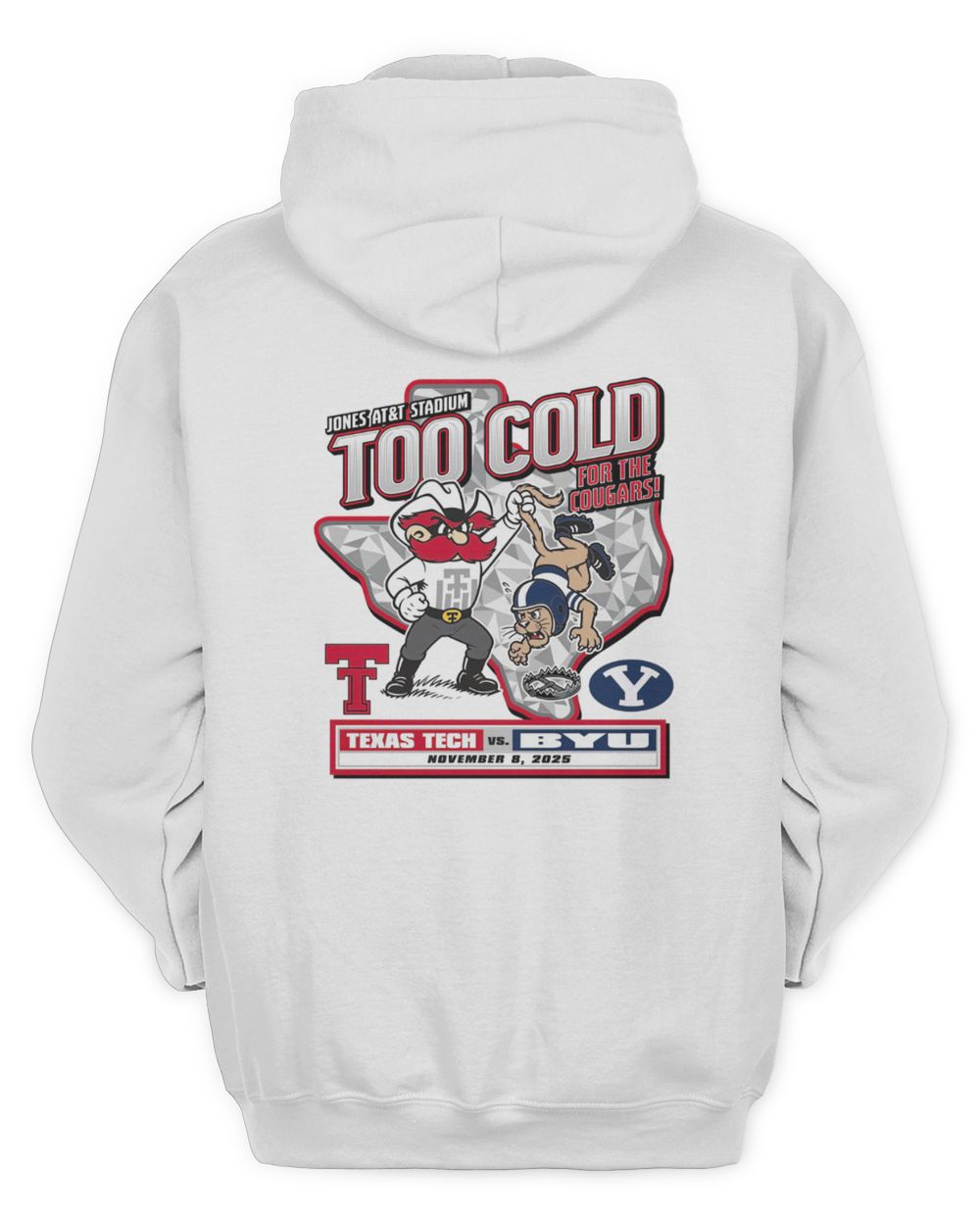 Texas Tech BYU 2025 Gameday Too Cold Rivalry Mascot Hoodie