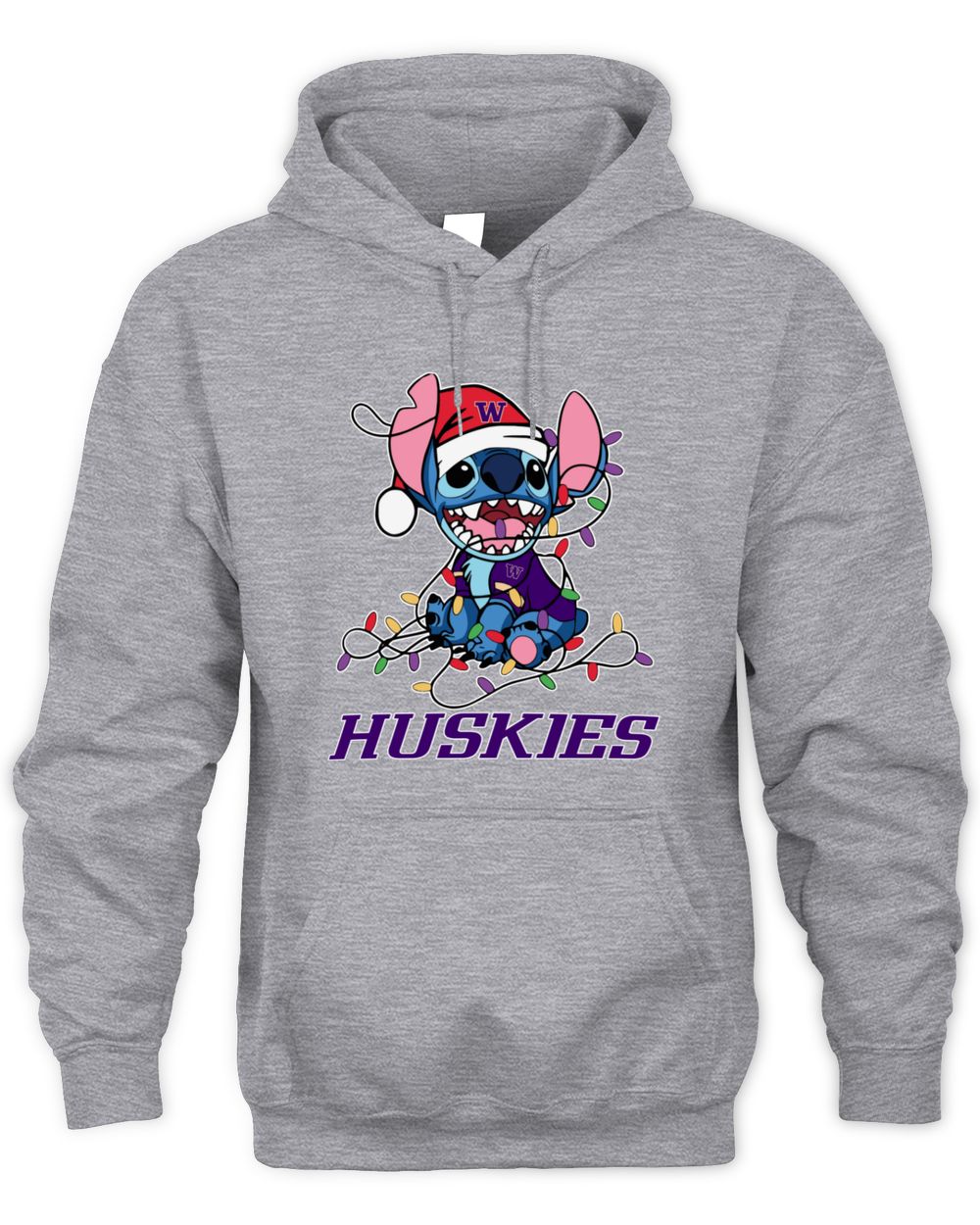 Washington Huskies Stitch Santa Christmas Lights Hoodie