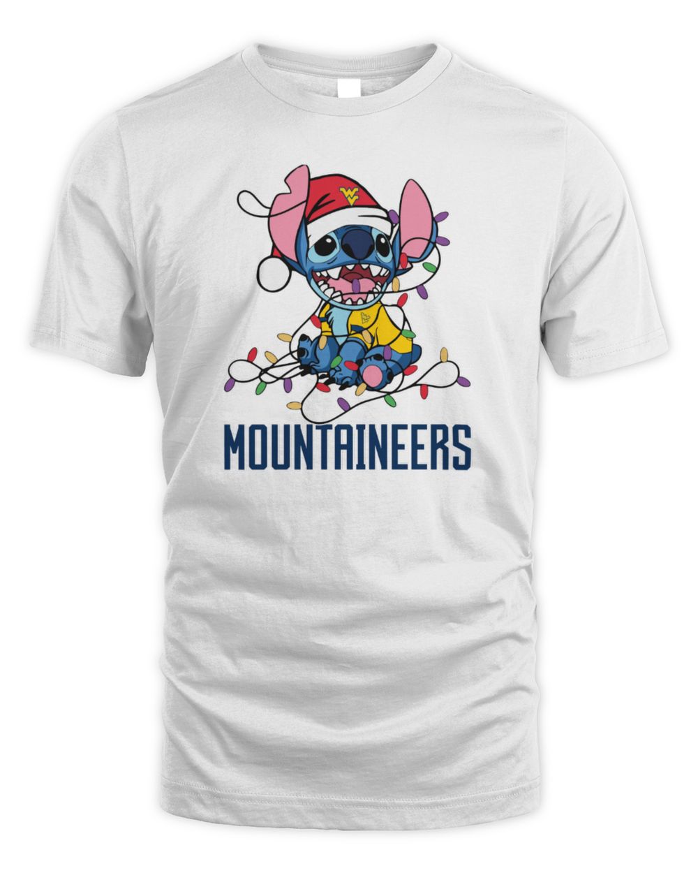 West Virginia Mountaineers Cute Stitch Christmas Lights NCAA T-Shirt