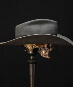 This clean 100X Beaver Teardrop with a heavy western brim is simple and severe. Wrapped in custom embossed black leather and a heavily textured black fabric. This badass cowboy kicker is ready to hit the trail or the town.