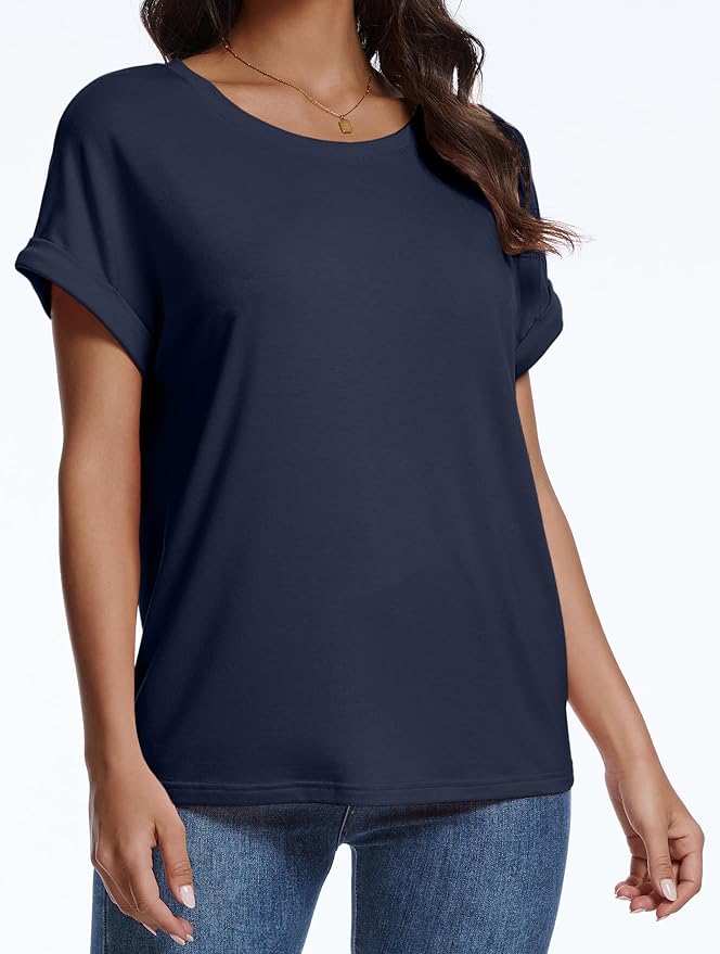 - Features: Women summer half sleeve t-shirt, round-neck design, solid color basic tee, lightweight casual tshirts, dressy blouses, going out tops, plus size tunic tops