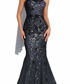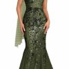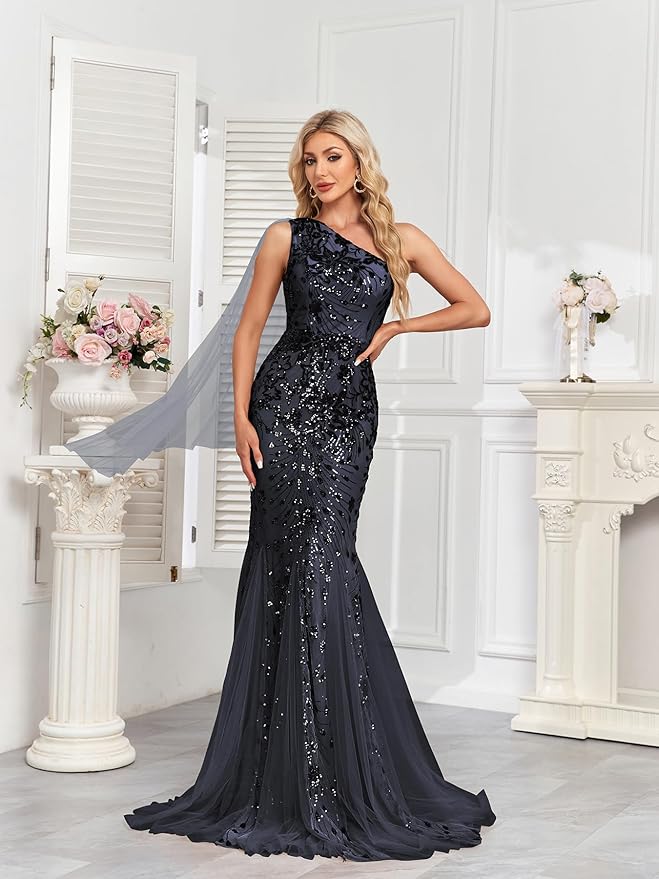 - Elegant Design: Exquisite one-shoulder mermaid gown with sequin beading and sleeveless design, perfect for formal evening events.