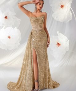 - Luxurious Fabric: Crafted from high-quality materials, this dress features a stunning gold color that shimmers under the light.